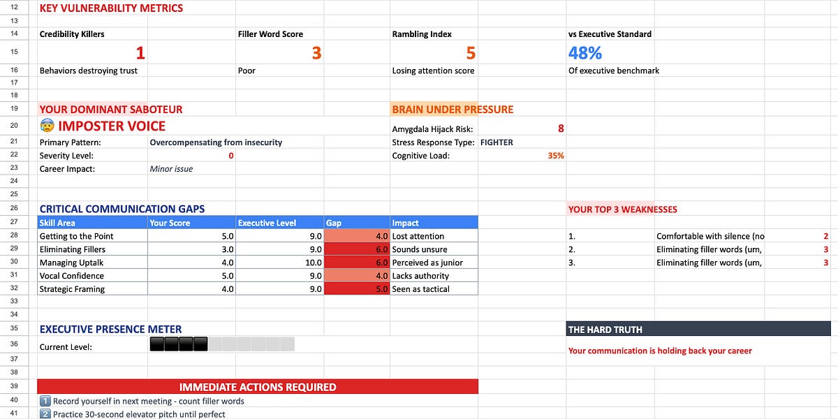 Mainly, once I’m in high-stakes conferences, my primitive mind takes over. Coronary heart fee spikes. Cognitive load hits 85%. And I default to my worst communication habits.